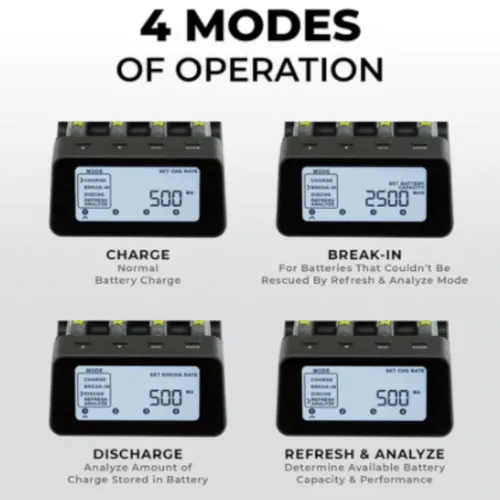 - 4 Modes of Operation: Charge, Break-In, Discharge, and Refresh & Analyze
