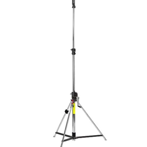 The Manfrotto 087NWLB Low Base 3-Section Wind Up Stand is a robust steel support engineered for professionals requiring reliable elevation and mobility in studio or on-location settings. Featuring a geared centrepost with two risers, it extends smoothly from a minimum height of 144 cm to a maximum of 276 cm, accommodating a substantial payload of up to 30 kg. Its low-profile base, complemented by a single levelling leg, ensures stability on uneven terrain, while braked wheels facilitate secure repositioning. The stand’s top attachment includes a 1 1/8″ (28 mm) socket and a 5/8″ (16 mm) stud, offering compatibility with a range of lighting equipment. Weighing 16 kg and folding down to 134 cm, the 087NWLB balances durability with portability, making it an indispensable tool for demanding photographic and video productions.