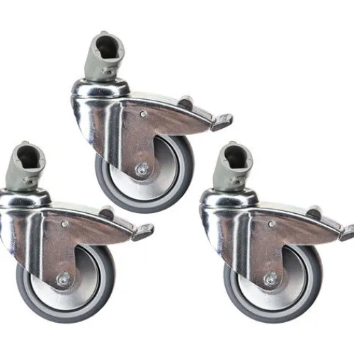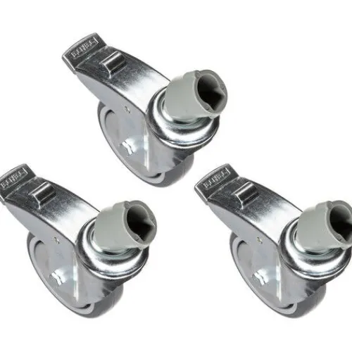 The Manfrotto 110G Locking Caster Set includes three 100mm diameter wheels, each equipped with a brake for secure positioning. The set features an adapter that fits light stands with a 22mm leg diameter, making it compatible with most light stands that have a round leg ending of 22mm. Ideal for enhancing mobility and stability, these casters allow for smooth movement and easy locking, making them a reliable addition to any studio or on-location setup.