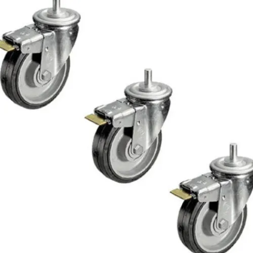 This set of three braked wheels, each with a 160mm (6.3-inch) diameter, is engineered for reliable use in extreme overload conditions, featuring a wide tread that reduces sinking on soft ground compared to other models.