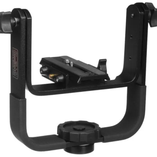 The Manfrotto 393 Heavy Telephoto Lens Support is designed to securely hold a telephoto lens and camera setup weighing up to 20 kg, allowing smooth tilting and locking in place. It features a swing mechanism housed within a sturdy frame that attaches to tripods or other supports via a 3/8″-16 mount. Pushing the lens and camera forward raises the front of the lens, while pulling it back enables low-angle shooting, providing versatile positioning for challenging shots.