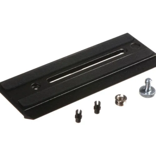 The Manfrotto 504PLONG Quick Release Mounting Plate is the long version of the standard camera plate for the Manfrotto 504HD fluid head. The extra length helps balance cameras with unusual weight distribution. the plate includes a single 1/4″-20 camera tie-down screw, a 1/4″-20 to 3/8″-16 adapter bushing, and two plastic video locating pins which can be used to prevent your camera from twisting on the plate.
