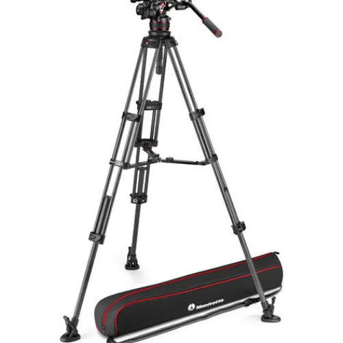 Manfrotto MVK612TWINMC 612 Nitrotech Fluid Video Head and Carbon Fiber Twin Leg Tripod with Middle Spreader
