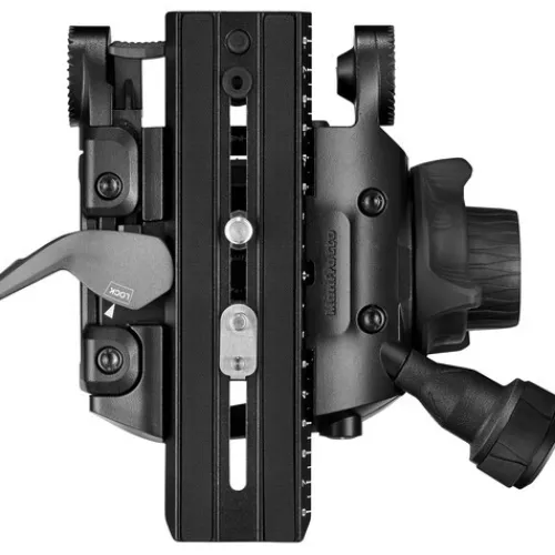 Providing further flexibility, the head’s camera plate system features a side-lock mechanism that allows for quicker and safer mounting of your camera plate and camera load. Instead of having to align and slide in your camera plate from the rear, you’re able to conveniently tuck in one side of the plate from the top and then push and click on the other side.