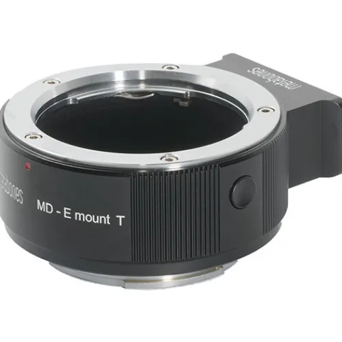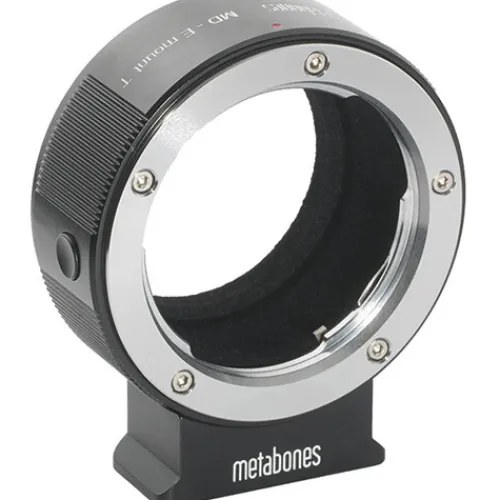 Mount your Minolta MD lens to your Sony E-mount camera with this T Adapter from Metabones. Crafted from brass with chromium plating, this adapter is designed for daily use and offers infinity focus. It features a flocked interior to limit flaring and ghosting from reflections inside the adapter, and a satin exterior finish to match the look of most cameras. Plus, it has a detachable Arca-type compatible tripod foot for easy mounting to tripods.