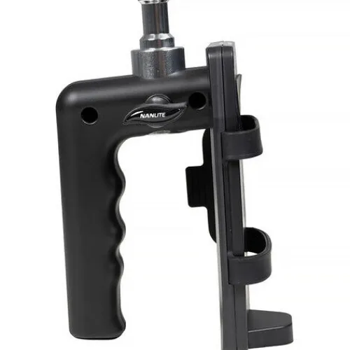 Designed for event photographers and on-the-go videographers, the Nanlite Power Bank Battery Grip for FC-60B and FC-120B provides a portable power solution beyond standard AC outlets. This grip securely holds a USB-C power bank with elastic straps, ensuring reliable operation while allowing greater mobility during shoots. Its ergonomic handle offers a comfortable grip for handheld use, while the wide base ensures stability on flat surfaces. Additionally, the built-in 5/8″ receiver enables secure mounting on a light stand, making it an essential accessory for outdoor and location-based lighting setups.