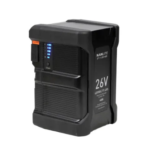 The Nanlite BT-V-26V489 is a high-capacity V-Mount Lithium-Ion battery designed to power 500W and above LED lights, making it an essential tool for video production, filmmaking, and professional photography. Engineered for reliability, it delivers robust performance for high-wattage lighting setups, ensuring uninterrupted power for demanding shoots.