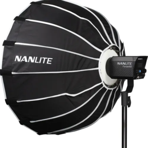 Our Nanlite Start Up Kit comprises a Forza 60B MK II COB light, a Forza Mini Mount Lantern, a Forza FM Mount Softbox, a Nanlite grid tailored for the softbox, and a high-quality 2.88m light stand.