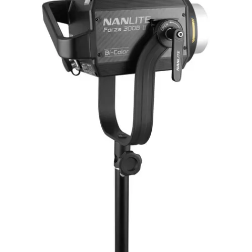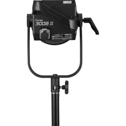 The light’s upgraded curved rotating yoke has a one-sided lock, forward articulation, and allows 360° rotation to provide a greater tilting range with optional large modifiers. It also features an incorporated umbrella holder to expand your light-shaping options. Additionally, the light’s Bowens mount capability makes the Forza 300B II compatible with a wide range of modifiers.