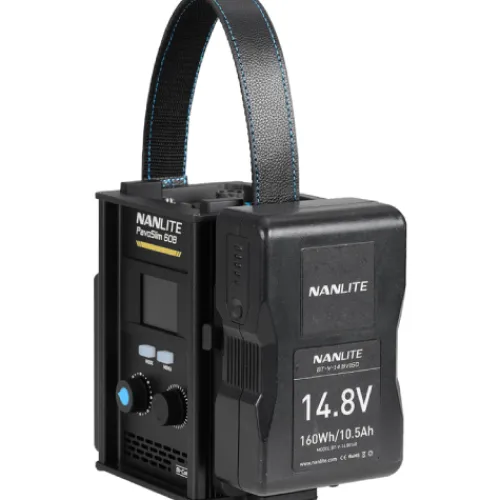 - Built-in battery plates for one NP-F battery and one V-mount battery.