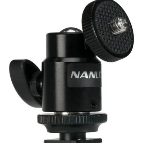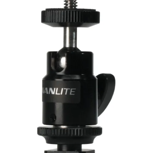 The Nanlite AS-BH-1/4 mini ballhead is perfect for adjusting the position of small on-camera LED panels or a Pavotube II 6C on a light stand with ease. Pairing this ballhead with a Kupo Superclaw or Mini Viser clamp enables you to securely mount and angle a small LED virtually anywhere, providing flexibility and control over your lighting setup.