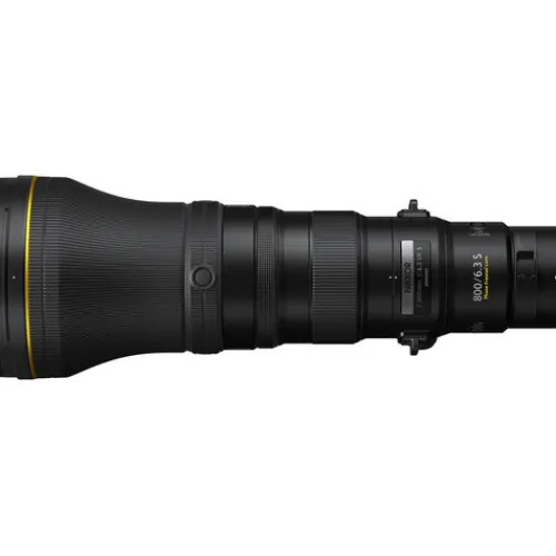 Compared to the former F-mount 800mm f/5.6 lens, which weighs over 4.535 Kg, this new Z-mount 800mm f/6.3 lens is half the weight at 2.385 Kg. Additionally, the mirrorless-specific design also contributes to a shorter overall lens length, measuring just over 38.1 cm long, compared to the former lens which measures 45.72 cm-long.