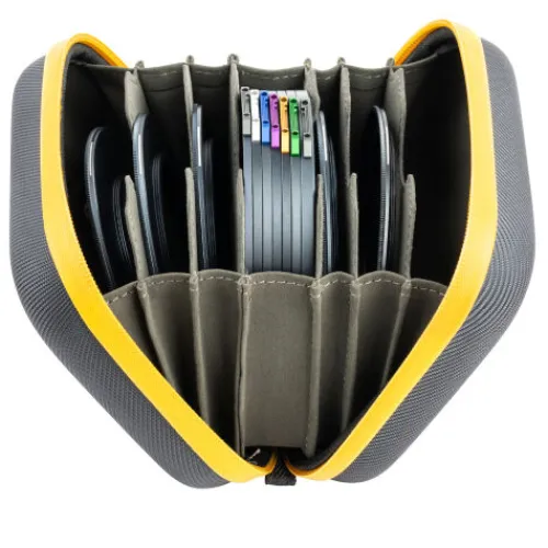 Despite its enhanced protective features, the Caddy Case remains compact and lightweight, easily fitting into your camera backpack without adding unnecessary bulk. Inside, each pocket is lined with microfibre, protecting your individual filters from scratches and damage. Additionally, the case offers shock-proof construction, minimising the risk of impact damage during transport.