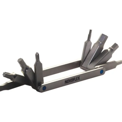 The Novoflex Multi-Tool with 8 Functions is a tiny but mighty tool, perfect for photographers and those working with tripods and other photographic accessories. This mini-tool comes with 5 hex keys (2, 3, 4, 5 and 6mm), a screwdriver, a cross-slot screwdriver and a Torx T25, all in a compact size.