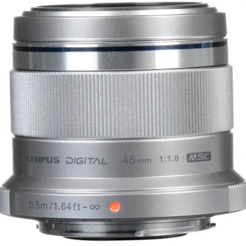 The Olympus M.Zuiko 45 mm f/1.8 Silver is a high-performance portrait lens with a bright f/1.8 aperture. MSC drive technology provides high-speed and silent autofocus, making it great for stills and movie shooting. When the aperture is fully open, you get a shallow depth-of-field, resulting in sharp focus on the subject and soft, beautiful defocusing of the background and out-of-focus areas. Plus, its beautiful metallic silver finish and light weight make it the perfect complement to your PEN micro four thirds compact system camera body.