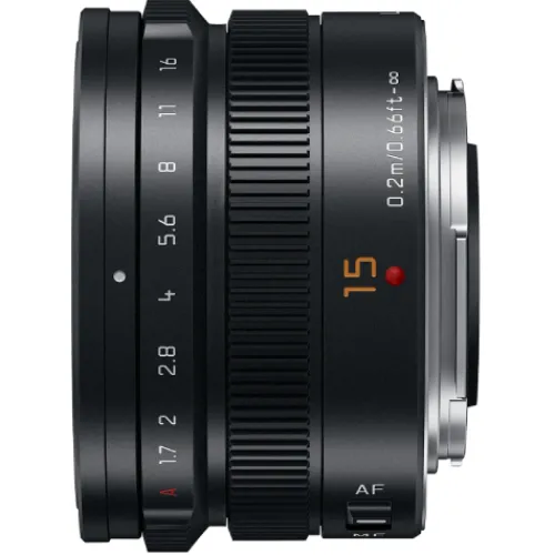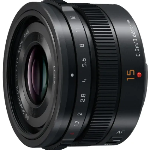 The Leica DG Summilux 15mm f/1.7 ASPH. from Panasonic is a 30mm equivalent wide-angle lens for Micro Four Thirds mirrorless cameras. With a bright f/1.7 maximum aperture, it’s ideal for shooting in low-light conditions and allows you to control the focus position for shallow depth of field and selective focus techniques. You can easily adjust the aperture with the manual aperture ring. An internal focusing system with a stepping AF motor ensures fast, quiet and smooth performance. The optical design includes three aspherical elements to reduce distortion and spherical aberration for sharper images with greater clarity. Plus, a Nano Surface Coating has been applied to lens elements to reduce lens flare and ghosting for more contrast-rich and colour-neutral photos and movies.