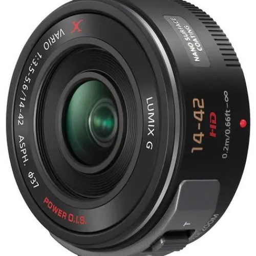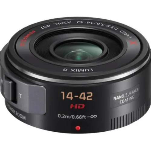 Panasonic’s Lumix G X Vario PZ 14-42mm f/3.5-5.6 Power O.I.S. Lens (Black) is a super compact retractable pancake 3x zoom lens (28-84mm equivalent in 35 mm and full-frame formats) for Lumix Micro 4/3 cameras that’s only about the size and weight of the 20mm pancake lens. It’s 6.1 x 4.77cm (the short dimension shrinks to 2.68cm when the power is off). It weighs just 0.095 kg. Not only is it small and light, but this X lens also has high-performance specs like electric-powered zoom operation, autofocus during movie recording, nano surface coating that drastically reduces ghosting and flare, and Power O.I.S. (Optical Image Stabilization) for greatly improved image sharpness and blur reduction. Two ED lens elements compensate for chromatic aberration, and the silent design makes this an ideal lens for shooting video.