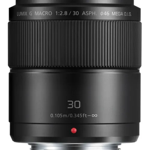 Take your up-close shooting to the next level with the Panasonic Lumix G Macro 30 mm f/2.8 ASPH MEGA OIS Lens. Compatible with Micro Four Thirds mirrorless digital cameras, its fast aperture delivers a silky smooth out of focus background and improved creative versatility in difficult lighting scenarios.