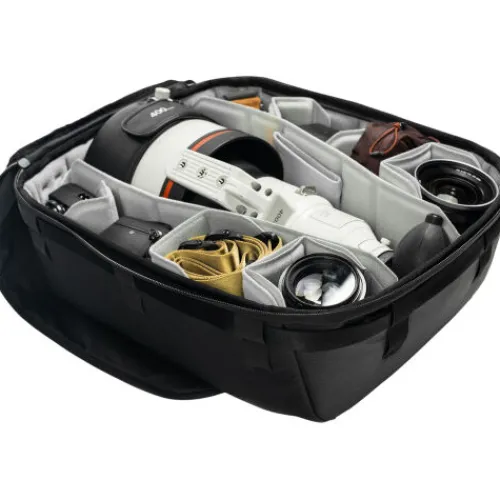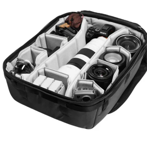 Safeguard and organise your photo, video, and drone gear with the Peak Design Camera Cube V2 X-Large, designed for use on its own or inside larger travel bags. Suitable for anything from small mirrorless kits to full professional setups, it fits securely in most Peak Design bags via included C-Clips, and also integrates with other brands. Customise the interior with FlexFold dividers and shelf inserts for vertical stacking, while the wide main opening and removable padding offer fast, clear access. Crafted with a weatherproof Bluesign-approved 160D nylon canvas shell and Ultra Zips, it includes side zips for backpack access, a floating pocket for small accessories, and loops for attaching Peak Design straps, sold separately.