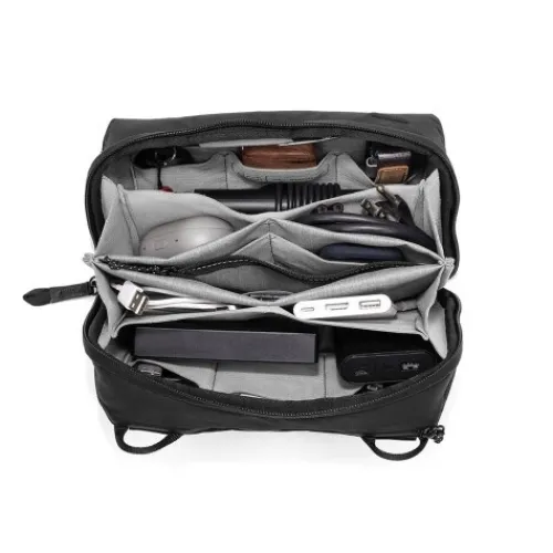 The Peak Design Tech Pouch 2L Charcoal is the perfect bag to keep your accessories and everyday gear tidy and organised. Equipped with origami-style internal pockets, you can organise the bag to suit your needs, depending on what products you are using. There is top and side pockets, smaller accessory pockets to hold SD cards, batteries, cables and more, as well as an external passport and document pocket. All the pockets are soft lined and are fitted with zippers for added protection.