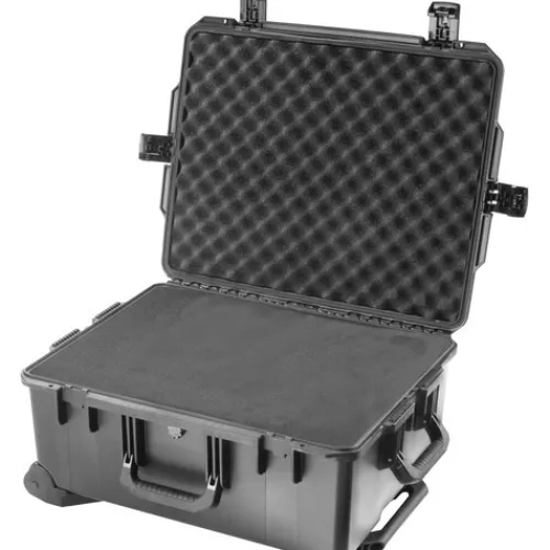 The Pelican iM2720 Storm Trak Case with Foam (Black) is the ultimate protection for your valuables. This injection-moulded case is made from HPX high-performance resin, making it virtually unbreakable, dent-resistant and shatter-resistant. It’s tough, rugged, lightweight and airtight and watertight. The Vortex valve automatically adjusts air pressure without letting in water, and won’t unscrew from the case. The Press & Pull latches open with the push of a button, and stay securely closed under impact or stress. It also has unbreakable moulded-in hasps to allow the addition of standard-size padlocks and hinges with integrated feet that hold fast under influence. Plus, it has three double-layered, soft-grip, solid-core handles, a lightweight, retractable, telescoping handle and rugged in-line wheels for easy transport.