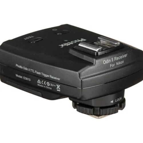 Unlock the full potential of your flash setup with the Phottix Odin II TTL Flash Trigger Receiver. Compatible with Nikon’s i-TTL flash system and featuring a 2.4 GHz radio system, the Odin II receiver can be used to integrate shoe-mounted flashes and studio strobes into your setup and can be triggered by the original Odin receiver or Mitros+ flash from up to 328′ away. It can also be used in a multi-system setup with Odin TTL, Strato, and Strato II receivers, as well as Mitros+, Indra360, and Indra 500 lights. A major improvement over the previous model is the expansion of channels and the introduction of the Digital ID, giving you more control over channels 5-32 to reduce interference with other systems.