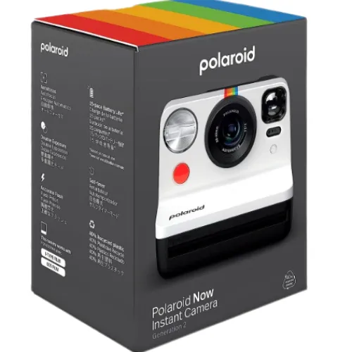 Keep your everyday moments forever with the Polaroid Now Gen 2 – Black & White. Made with 40% recycled materials and an internal lithium-ion battery that charges via USB-C, this camera is packed with features for limitless creativity. It includes a dual lens autofocus system, accurate human friendly flash, self-timer and Double Exposure mode. Available in 4 vibrant colours including Black, Panda, Red and Blue, the Polaroid Now Generation 2 also comes with a neck strap and USB charging cable. Compatible with i-Type & 600 film, sold separately.
