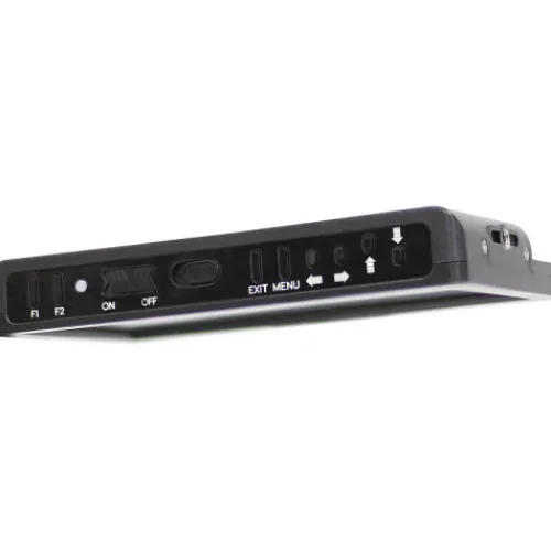Power this monitor using the one Sony L-series-type battery or a separately available power supply. Control buttons are located on top of the monitor with a built-in speaker and a headphone output providing audio monitoring. The HD7H monitor features a variety of image-evaluating tools, including a histogram, false colour, exposure, focus peaking, anamorphic de-squeezing, and frame markers.