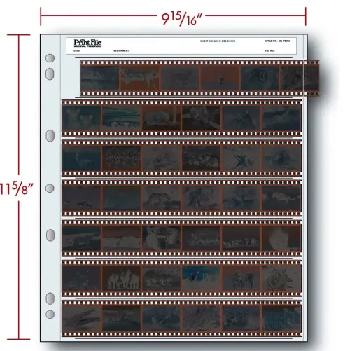 Print File Negative Sleeves offer an archival solution for storing your precious developed negatives. Compatible with 35mm film, these negative sleeves offer 7 rows with 6 frames in each for a total of 42 frames per page.