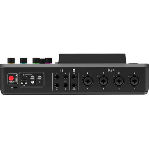 The four analog inputs can accommodate everything from a single microphone for a solo podcast to a full band for a livestream. There are also four high-power headphone outputs and ¼-inch balanced line outputs for connecting speakers for crystal-clear monitoring and playback.