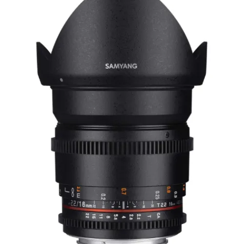 The Samyang 16mm T2.2 is one of Samyang Optics VDSLR lens line for APS-C image sensor size. The lenses produce the same image colour and have a united location of aperture and focus gear ring to maximise the convenience when filming.