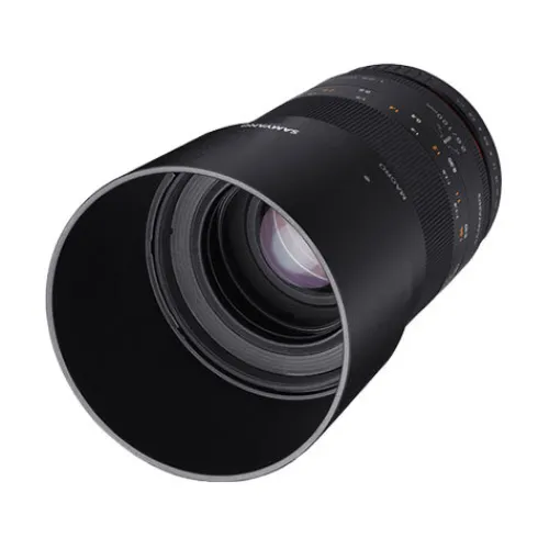 The included cylindrical lens hood offers light protection from bumps and also reduces flare and reflections that can occur when shooting in bright sunlight. The detachable lens hood can be reversed over the Samyang 100 mm f/2.8 Macro Lens for convenient transport and storage.