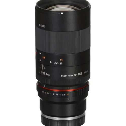 The Samyang 100mm f2.8 ED UMC is a manual macro lens designed for use with full-frame and APS-C sensor cameras. With a focal length of 100mm, a 1:1 magnification ratio and a minimum focus distance of 30cm, this highly versatile lens is perfect for detailed close-ups and portraits. The broad aperture range of f/2.8 to f/32 offers immense creative control, allowing you to tackle a variety of photographic scenarios – from shallow depth of field effects to poor light conditions, to a long depth of field when working with close-up subjects, this lens is up to the task.