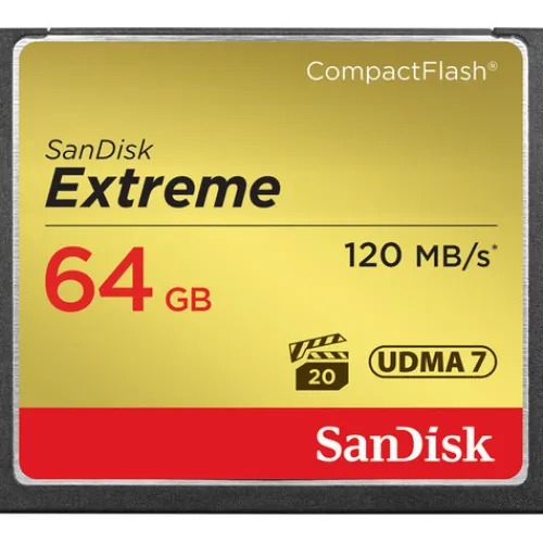 The SanDisk Extreme Compact Flash 64GB memory card is a logical choice for photographers and videographers. A blistering burst-mode write speed of up to 60MB/s combined with a sustained Video Performance Guarantee (VPG-20) delivers minimal lag time between shots and reliable Full HD Video recording at resolutions up to 1080p, while a maximum transfer speed of up to 120MB/s ensures your workflow is fast and efficient.