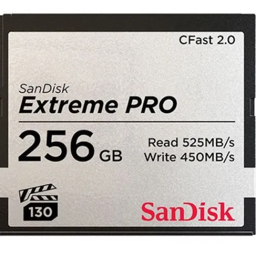 This SanDisk Extreme PRO CFast 2.0 features a 256GB storage capacity. Its data write speeds of up to 450MB/s and read speeds up to 525 MB/s, make it an ideal choice for professionals from the broadcast, cinema, and photography industries.
