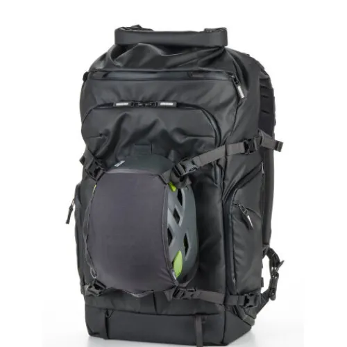 This black Action X40 V2 Starter Kit from Shimoda Designs includes an Action X40 backpack, a medium DSLR core unit, a helmet holder, and a rain cover. Ideal for photographers, the pack provides a compact and durable carry solution with quick access to gear. The internal core unit is a divider insert that can accommodate most gripped, 6.7″ DSLR cameras, while two padded sleeves protect laptops or tablets up to 16″. The roll-top access allows you to expand or compress the volume based on your needs. Multiple attachment straps, including TPU compression straps, ensure increased durability when securing bulky items such as skis. The removable helmet holder allows you to attach a bike or ski helmet to the exterior of your pack.