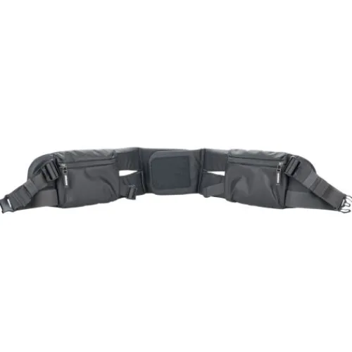 The black HD Waist Belt from Shimoda Designs provides stability and redistributes the weight of your backpack from your shoulders to your hips, offering comfort and support during long treks with heavy loads. The belt includes two zip-closure storage pockets and around 4″ of adjustable sizing. Made with a nylon exterior, high-density EVA padding, and air mesh inner padding, it enhances breathability for improved comfort.