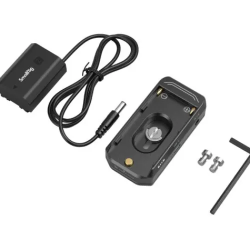 The SmallRig NP-F Battery Adapter Mount Plate Kit (Advanced Edition) 4341 is designed to power Sony FX3, FX30, α7CR, α7C II, α7 IV, ZV-E1, and other mirrorless cameras using NP-F batteries (including Sony and third-party brands). The aluminium alloy plate features gold-plated electrical contacts for enhanced durability and conductivity. It includes a self-locking button for quick and secure battery installation and a 1/4″-20 threaded hole for easy attachment to the cage. The plate offers 36W 7.4V/12V DC outputs and a 36W USB-C port for charging or current output. Ports include short circuit protection and automatic wake-up/sleep functions, while LED indicators display USB charging, battery connection, and battery life.