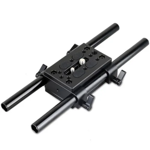 Product Highlights Attach to any tripod plate or other standard bridge plate; Clamps onto 15mm rails for accessories attachment; Allows 40mm adjustment for balance control.