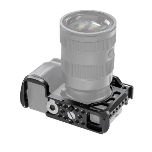 SmallRig Cage for Sony A6600 CCS2493 is designed to provide protection and mounting threads for accessories such as monitor, microphone, light and handles. The cage secures to the bottom of camera via the bottom 1/4″-20 screw and M2.5 screw to prevent twisting. Featuring multiple 1/4″-20, 3/8″-16 and Arri 3/8″-16 accessory holes that allows to mount a Top Handle 2165, Monitor Mount 2294 and 2348. It integrates with two cold shoe mounts with one on the top and the other on the left for microphone and light. Additionally, the cage features strap slots on both sides for carry strap. The bottom comes with a flat-head screw driver for quick installation. Optional HDMI Cable Clamp 1693 and Lens Adapter Support 1787 are sold separately if needed.