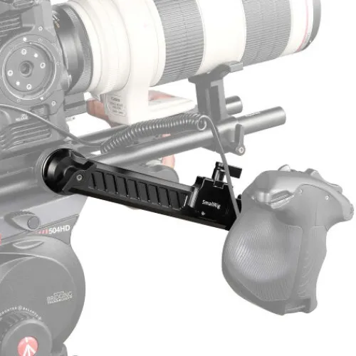 The SMALLRIG Extension Arm with ARRI Rosette 1870 is an adjustable rosette arm designed for flexibility in gear setup. Featuring ARRI standard rosettes (M6, 31.8mm diameter) on both ends, it provides an extension range of 167mm to 255mm, making it compatible with ARRI standard rosette handgrips and other equipment. The central NATO rail allows easy distance adjustment through tightening and loosening the M5 thumbscrew, with an additional M3 thread to prevent accidental removal. Multiple 1/4″ and 3/8″ threaded holes are included for attaching additional rigs and accessories, providing a versatile solution for relocating handles for remote control operation.
