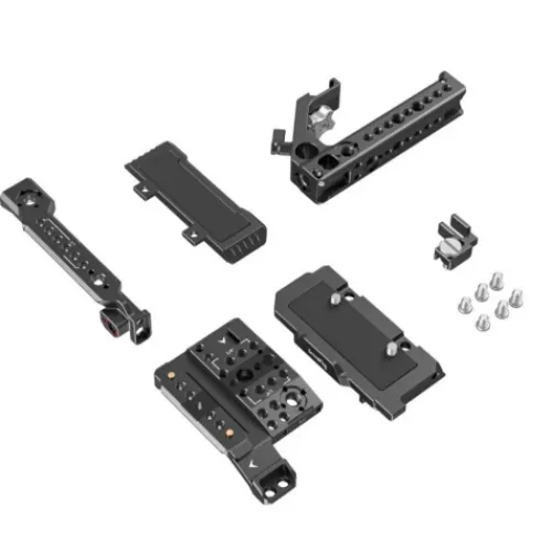 The SmallRig Handheld Kit for Canon EOS C70 3899 is designed to protect the camera while offering multiple accessory mounting points for a comfortable handheld shooting experience. The kit includes a top plate, side plate, base plate, detachable extended baseplate, NATO top handle, cable clamp, and more. The NATO top handle enhances camera movement and stabilises shooting, while the top plate, baseplate, and side plate can be assembled into a half cage that supports the original handle and microphone holder. The half cage’s base features a baseplate and detachable extended baseplate, enabling quick switching between handheld, stabiliser, and tripod setups by removing the extended baseplate. The kit also includes an HDMI cable clamp to prevent accidental signal disconnections and ensure stable data transmission, with full access to the original camera grip and buttons. Multiple mounting options, including 1/4″-20 threaded holes, 3/8″-16 threaded holes, cold shoe mounts, ARRI locating holes, and NATO rails, support various accessories such as the Side Handle 3260/2093/2427, Top Handle 2165/1638, Magic Arm 2115/2071, Monitor Mount 3601/2903/2905, and Baseplate with Dual 15mm Rod Clamp 1674. An Allen wrench is included for easy assembly and disassembly.
