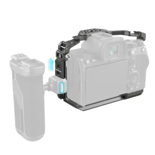 The SmallRig HawkLock Quick Release Cage 4481 is designed to offer robust protection and flexible accessory mounting for the Sony Alpha 7R V, Alpha 7 IV, Alpha 7S III, Alpha 1, and Alpha 7R IV cameras. It features the patented HawkLock quick-release structure, which includes cold shoes, NATO rail, and Arca-Swiss compatibility. This system works with HawkLock eco-accessories, ensuring a solid connection with no false positioning and allowing for one-touch loading and locking to improve disassembly efficiency. The cage locks the camera securely using a bottom locating pin, a 1/4″-20 screw, and an M2.5 screw on the left side, with side lock adapters that can be adjusted to suit different camera models. Built-in protective spacers shield the camera from scratches, while providing easy access to camera interfaces, dials, buttons, and battery doors. A spindle spanner is integrated into the battery compartment, following the camera’s curve and leaving room for a comfortable grip. The cage includes 1/4″-20 threaded holes, ARRI 3/8″-16 locating holes, and HawkLock cold shoe mounts, enabling the attachment of accessories such as the top handle 2165C, side handle 2093, monitor mount 2903, microphones, and LED lights. The bottom QD socket supports a quick-release shoulder strap. The HawkLock Arca-Swiss quick-release plate is compatible with DJI RS 2, RSC 2, RS 3, RS 3 Pro, and the Arca-Swiss quick-release plate 3154 for stabiliser shooting. Additional accessory mounting options include holes for the hand strap PAC2456. The cage also features a built-in magnetic spanner for easy assembly and disassembly.
