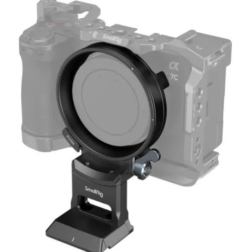 The SmallRig Horizontal-to-Vertical Mount Plate for Sony Alpha 7C II / Alpha 7CR 4424 is designed for use with Cage 4422 or Baseplate 4438, enabling quick switching between horizontal and vertical shooting without altering the lens’s optical axis. It provides full access to the LCD flip screen and ports while featuring built-in pads to prevent scratches and twisting. Compatible with Arca-type / Manfrotto RC2 tripods and DJI RS-series gimbals, the plate rotates 90 degrees with a simple knob release. The bottom 1/4″-20 and 3/8″-16 threaded holes support additional quick-release plates for flexible setup options.