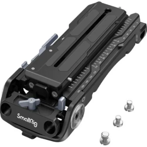 The SmallRig Shoulder Pad Pro 2837B is designed for the Sony VCT-14 quick-release baseplate, offering a seamless transition between shoulder, handheld, and tripod shooting. It features a SmallRig quick-release plate on top to attach the camera and a Manfrotto 501 quick-release plate for connecting to the shoulder pad. The shoulder pad includes a standard M6 ARRI rosette mount on both sides, making it compatible with the original control handles of the 1810 or FX9 cameras, as well as dual 15mm rod systems. The front rod clamp is vertically adjustable by 27mm to ensure proper alignment with cameras like the FX9, FS5, URSA MINI, and CANON C300. The Manfrotto 501 plate allows for 0-80mm forward sliding, while the SmallRig quick-release plate offers 0-120mm backward sliding, making it easy to balance your camera, install follow focus systems, or matte boxes without removing them. Additionally, the V-shaped bottom plate includes 1/4″-20 and 3/8″-16 threaded holes for compatibility with various quick-release plates and tripods. The ergonomic silicone shoulder pad ensures comfort during extended shoots, and a built-in flat wrench provides easy access for adjustments.