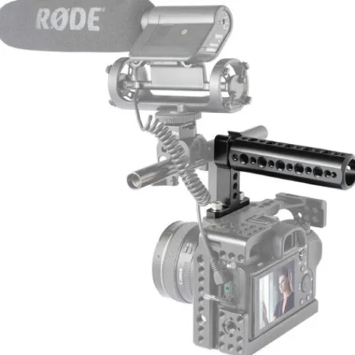 The SmallRig Top Handle (1/4″-20 Screws) 1638C is designed to enhance low-angle shooting and reduce arm strain. Its ergonomic design offers a comfortable grip, and it comes equipped with various accessory mounts. These include a front cold shoe mount for a microphone, LED light, or Monitor Mount 2905; an ARRI 3/8″-16 locating hole at the rear for Monitor Mount 2903; and 1/4″-20 & 3/8″-16 threaded holes on the top and sides for attaching the Magic Arm 2070 to mount monitors. The handle is also compatible with Remote Control 2924 for camera recording. It can be installed via standard threaded holes, providing flexibility and ease of use.