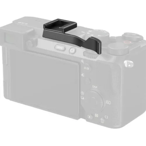 The SmallRig Thumb Grip for Sony Alpha 7C II / Alpha 7CR / Alpha 7C (Black) 4820 is designed to provide a secure and comfortable grip for one-handed camera use, enhancing safety and stability. Easily installed by sliding into the camera’s hot shoe, the grip features silicone pads that protect the camera body and hot shoe components from dust, rust, and electronic shorts. Its concave design improves safety and convenience during one-handed shooting, perfect for content creation. The grip also includes a built-in cold shoe interface, allowing you to expand your setup with accessories such as fill lights and microphones.