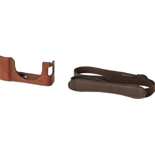 The SmallRig Leather Half Case Kit for FUJIFILM X100VI offers premium protection with vintage charm. Made from durable top-grain leather with a soft suede lining, it prevents scratches while elevating retro aesthetics. The aerospace-grade aluminium frame ensures a snug fit and impact protection. Attach tool-free using the built-in 1/4″-20 thumb screw, and access key features effortlessly. A threaded hole at the base allows direct tripod mounting. Complete with a soft PU shoulder strap, this kit delivers both functionality and timeless style.