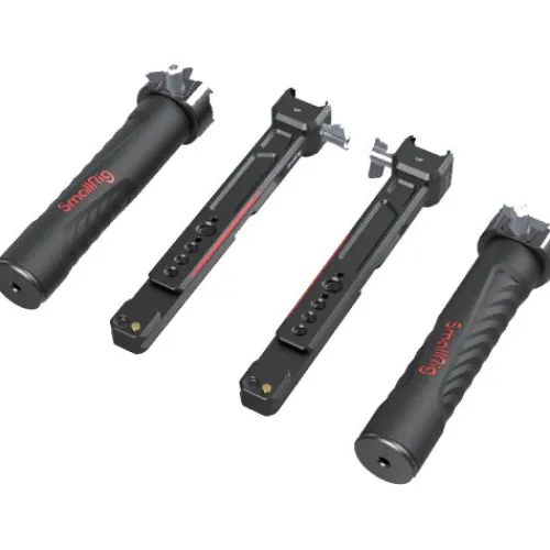 The SmallRig Dual Handgrip 3027 reduces arm fatigue and offers versatile accessory mounting options. Securing to the gimbal via NATO rails, it allows for quick detachment and horizontal adjustment, supporting inverted shooting modes. It features 1/4″-20 and ARRI 3/8″-16 threads for accessories like Magic Arm 2115 and cold shoe ports for Monitor Mount 2905, microphones, or wireless receivers. The handgrip disassembles into four parts for easy storage and transport, making it a functional and portable solution for extended shooting sessions.