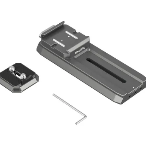 The SmallRig HawkLock H38 Manfrotto Quick Release Plate 4638 is designed for DJI RS 2, RSC 2, RS 3, RS 3 Pro, RS 4, and RS 4 Pro stabilisers. It enables efficient switching between tripod and stabiliser setups, optimising filming time. Built to Manfrotto standards, this plate features a tool-free quick-release design. The internal Arca-Swiss quick-release baseplate includes an adjustable anti-slip feature and a gear rail for precise front-to-back adjustments, and it is compatible with SmallRig cages (ID 4481) for streamlined installation.